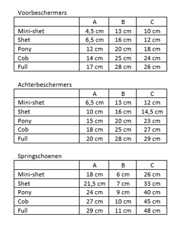Kan je niet de juiste afmetingen vinden voor jouw pony of paard, kies dan de customized variant om de beschermer nog beter op maat te laten maken.