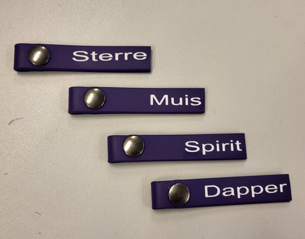 Alle nametags worden gemaakt van Biothane.