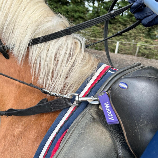 Deze nametags maken het makkelijk om kenbaar te maken welke materialen bij welk paard/pony behoren. Daarnaast is het een simpele manier om standaard producten te personaliseren. Een nametag is ook handig om als ICE label in te zetten als je vaak buitenrijdt. Je bevestigt deze eenvoudig aan jouw zadel of hoofdstel.