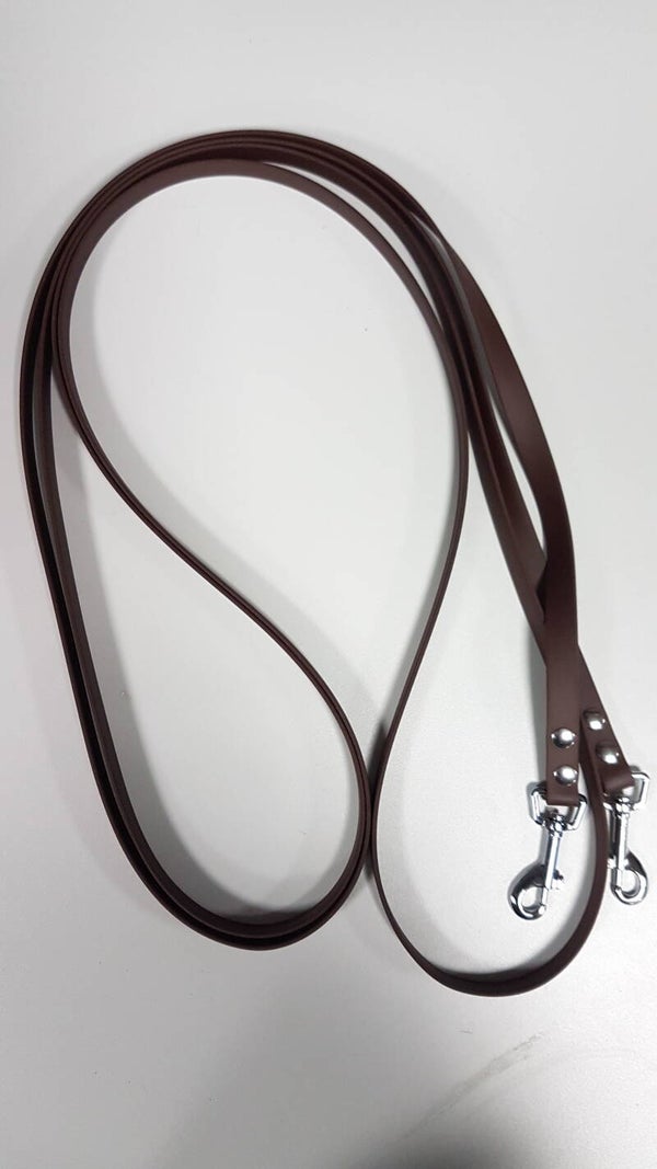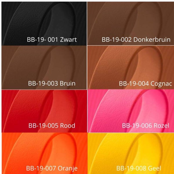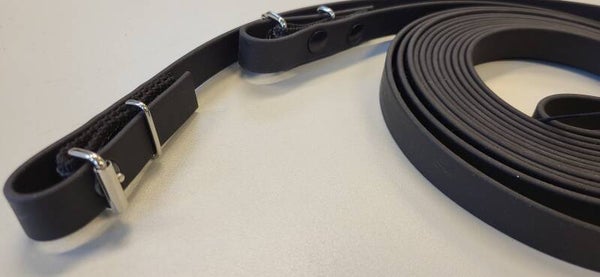 De teugels zijn gemaakt van biothane, deze zijn verkrijgbaar in 4 kleuren : zwart, donkerbruin, bruin en cognac