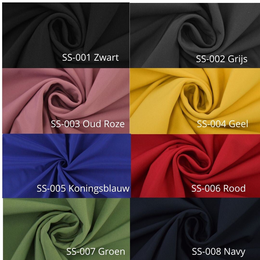 Deze stof is waterafstotend en verkrijgbaar in diverse kleuren.